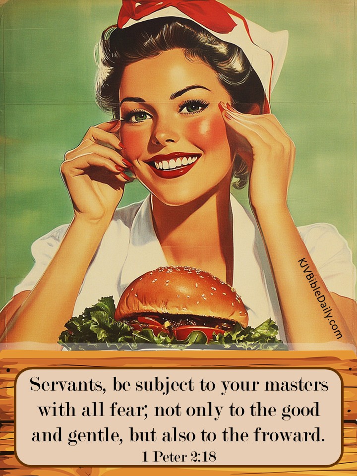 1 Peter 2:18 KJV Share this:Tweet Share on WhatsApp (Opens in new window) WhatsApp Print (Opens in new window) Print Share on Reddit (Opens in new window) Reddit Email a link to a friend (Opens in new window) Email Share on TumblrPocket Share on Telegram (Opens in new window) Telegram Like Loading...