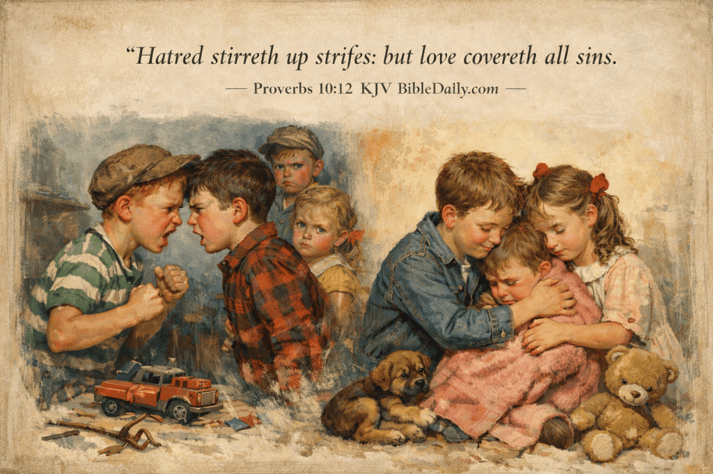 Proverbs 10:12 KJV Share this:Tweet Share on WhatsApp (Opens in new window) WhatsApp Print (Opens in new window) Print Share on Reddit (Opens in new window) Reddit Email a link to a friend (Opens in new window) Email Share on Tumblr Share on Telegram (Opens in new window) Telegram Like Loading...