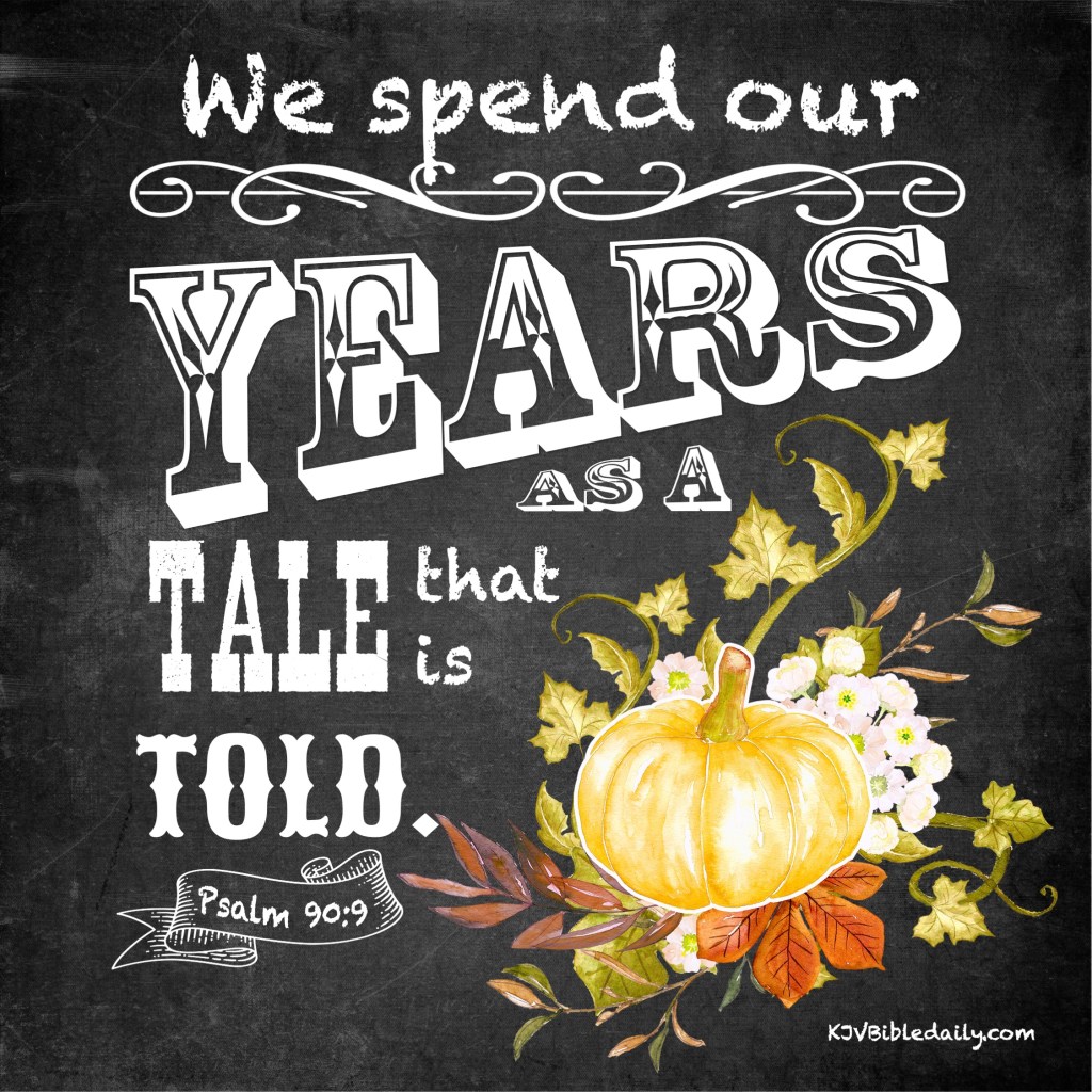Psalm 90:9 KJV Share this:Tweet Share on WhatsApp (Opens in new window) WhatsApp Print (Opens in new window) Print Share on Reddit (Opens in new window) Reddit Email a link to a friend (Opens in new window) Email Share on Tumblr Share on Telegram (Opens in new window) Telegram Like Loading... Related