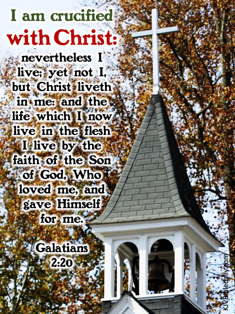 Galatians 2:20 KJV Share this:Tweet Share on WhatsApp (Opens in new window) WhatsApp Print (Opens in new window) Print Share on Reddit (Opens in new window) Reddit Email a link to a friend (Opens in new window) Email Share on Tumblr Share on Telegram (Opens in new window) Telegram Like Loading... Related