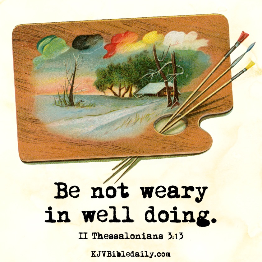 II Thessalonians 3:13 KJV Share this:Tweet Share on WhatsApp (Opens in new window) WhatsApp Print (Opens in new window) Print Share on Reddit (Opens in new window) Reddit Email a link to a friend (Opens in new window) Email Share on Tumblr Share on Telegram (Opens in new window) Telegram Like Loading... Related