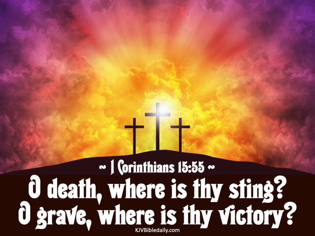 I Corinthians 15:55 KJV Share this:Tweet Share on WhatsApp (Opens in new window) WhatsApp Print (Opens in new window) Print Share on Reddit (Opens in new window) Reddit Email a link to a friend (Opens in new window) Email Share on Tumblr Share on Telegram (Opens in new window) Telegram Like Loading... Related