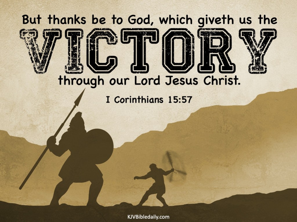I Corinthians 15:57 KJV Share this:Tweet Share on WhatsApp (Opens in new window) WhatsApp Print (Opens in new window) Print Share on Reddit (Opens in new window) Reddit Email a link to a friend (Opens in new window) Email Share on Tumblr Share on Telegram (Opens in new window) Telegram Like Loading... Related