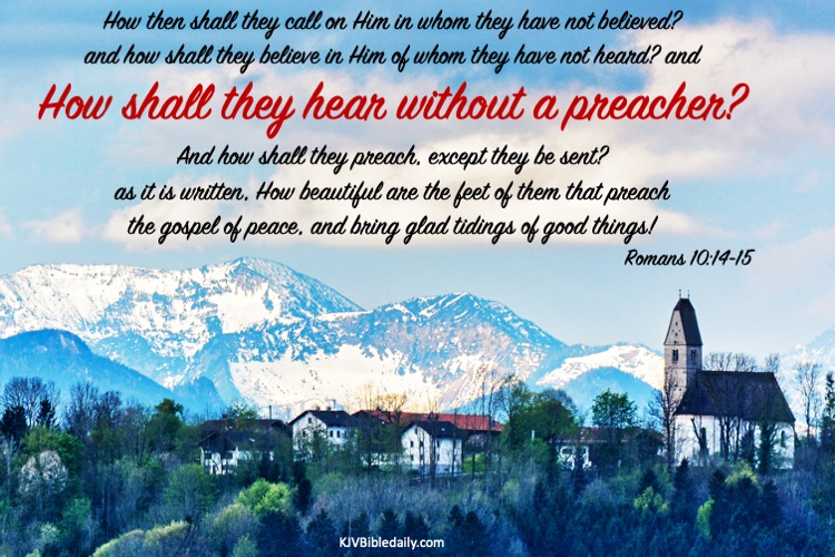 Romans 10:14-15 KJV Share this:Tweet Share on WhatsApp (Opens in new window) WhatsApp Print (Opens in new window) Print Share on Reddit (Opens in new window) Reddit Email a link to a friend (Opens in new window) Email Share on Tumblr Share on Telegram (Opens in new window) Telegram Like Loading... Related