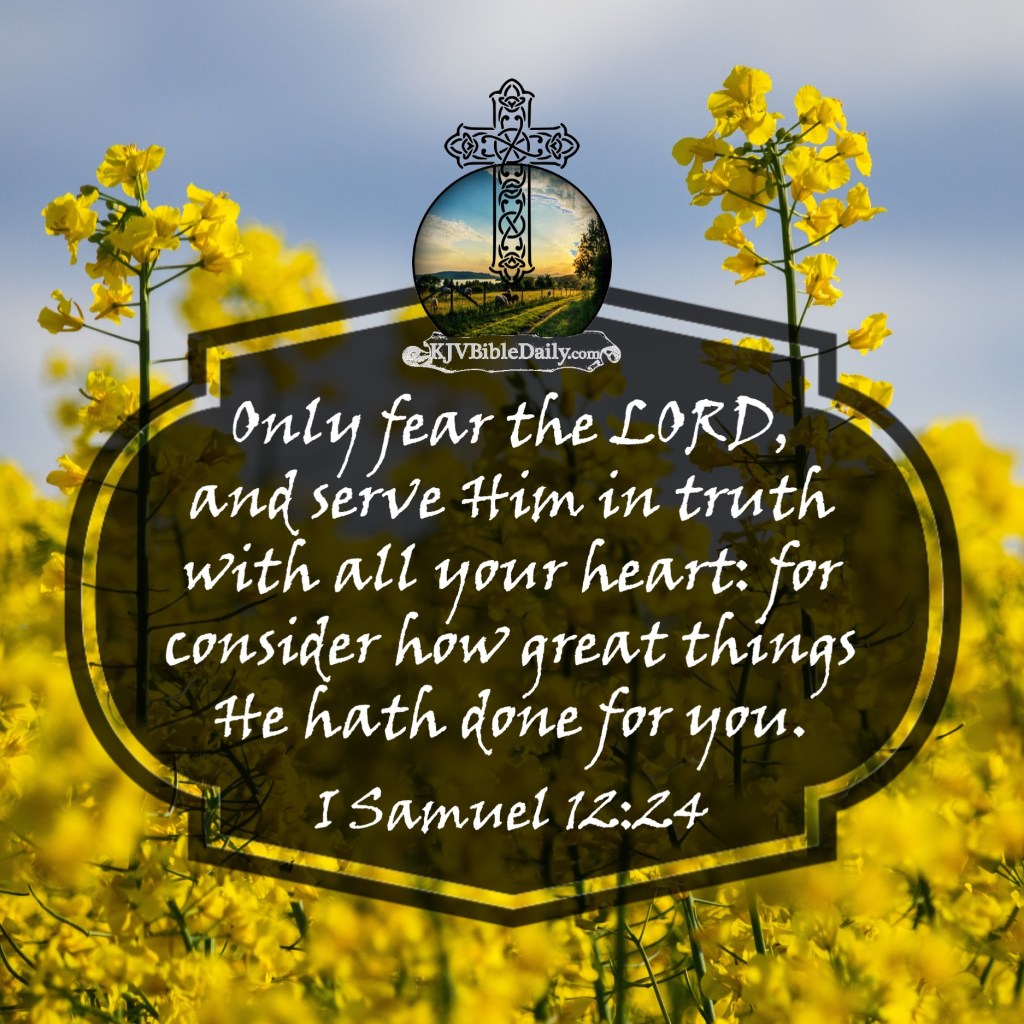 I Samuel 12:24 KJV Share this:Tweet Share on WhatsApp (Opens in new window) WhatsApp Print (Opens in new window) Print Share on Reddit (Opens in new window) Reddit Email a link to a friend (Opens in new window) Email Share on Tumblr Share on Telegram (Opens in new window) Telegram Like Loading... Related