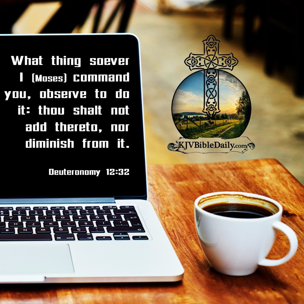 Deuteronomy 12:32 KJV Share this:Tweet Share on WhatsApp (Opens in new window) WhatsApp Print (Opens in new window) Print Share on Reddit (Opens in new window) Reddit Email a link to a friend (Opens in new window) Email Share on Tumblr Share on Telegram (Opens in new window) Telegram Like Loading... Related