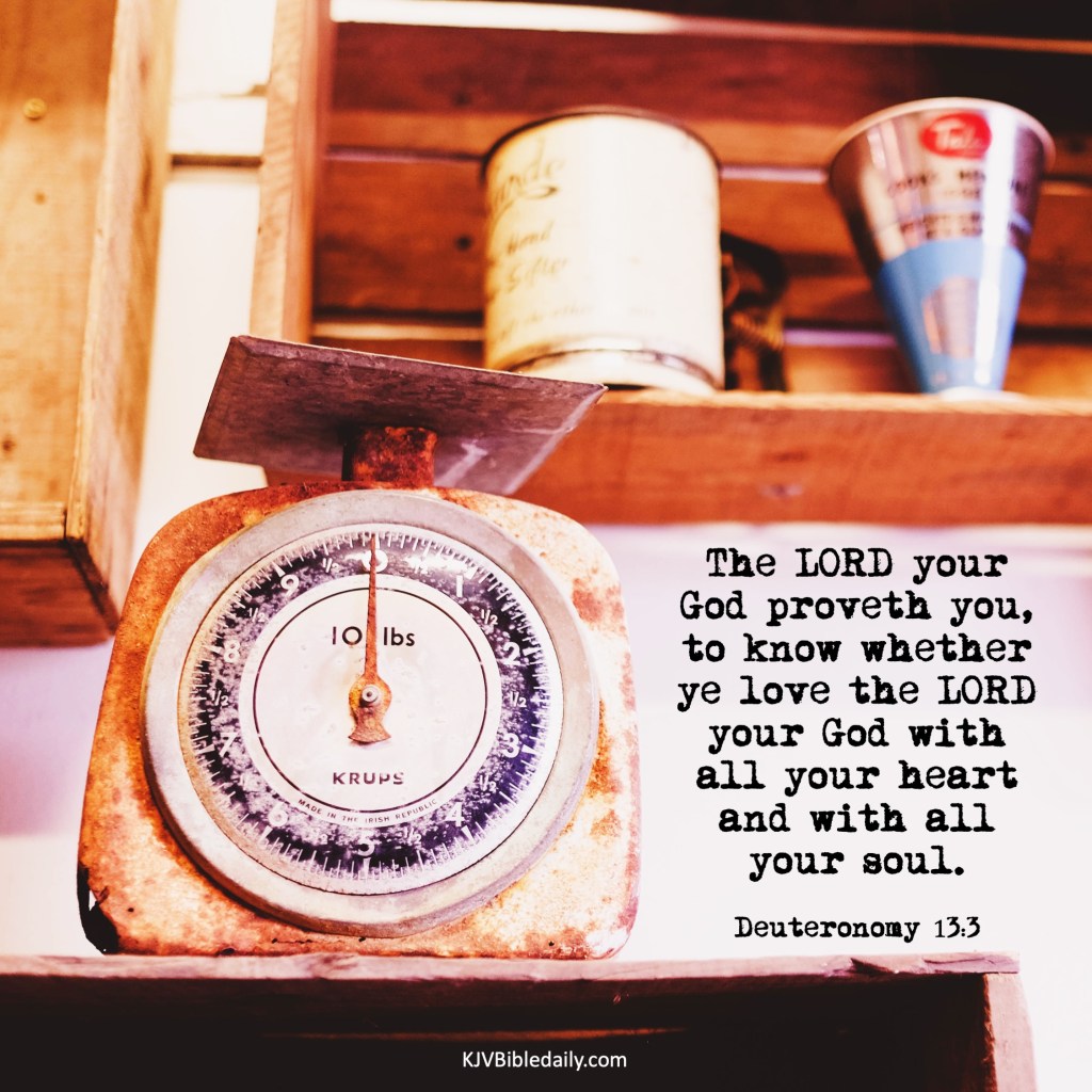Deuteronomy 13:3 KJV Share this:Tweet Share on WhatsApp (Opens in new window) WhatsApp Print (Opens in new window) Print Share on Reddit (Opens in new window) Reddit Email a link to a friend (Opens in new window) Email Share on Tumblr Share on Telegram (Opens in new window) Telegram Like Loading... Related