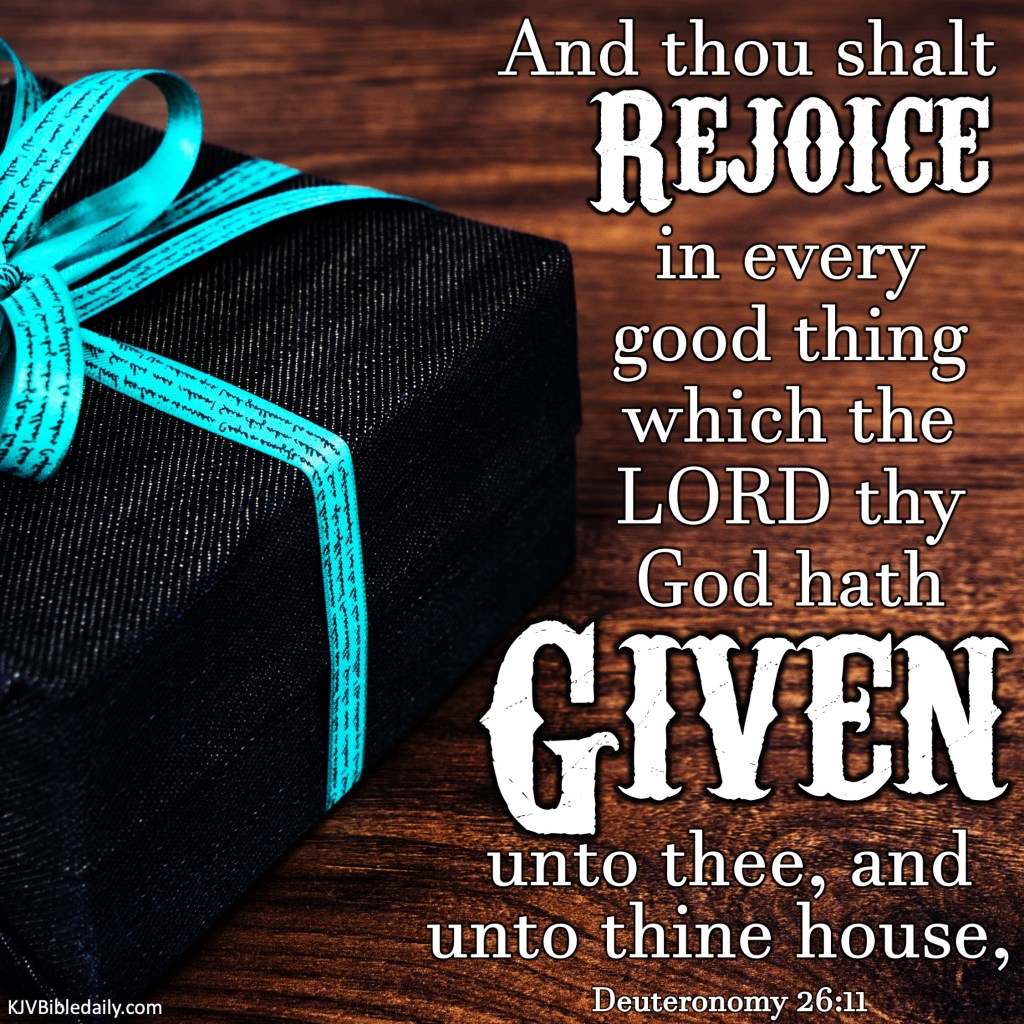 Deuteronomy 26:11 KJV Share this:Tweet Share on WhatsApp (Opens in new window) WhatsApp Print (Opens in new window) Print Share on Reddit (Opens in new window) Reddit Email a link to a friend (Opens in new window) Email Share on Tumblr Share on Telegram (Opens in new window) Telegram Like Loading... Related