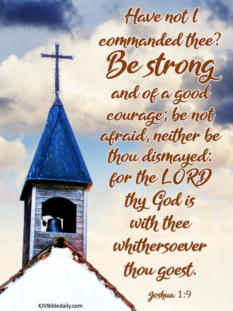 Joshua 1:9 KJV Share this:Tweet Share on WhatsApp (Opens in new window) WhatsApp Print (Opens in new window) Print Share on Reddit (Opens in new window) Reddit Email a link to a friend (Opens in new window) Email Share on Tumblr Share on Telegram (Opens in new window) Telegram Like Loading... Related