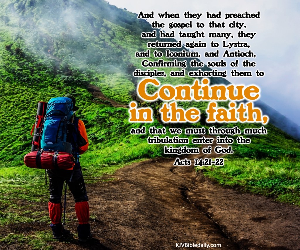Acts 14:21-22 KJV Share this:Tweet Share on WhatsApp (Opens in new window) WhatsApp Print (Opens in new window) Print Share on Reddit (Opens in new window) Reddit Email a link to a friend (Opens in new window) Email Share on Tumblr Share on Telegram (Opens in new window) Telegram Like Loading... Related