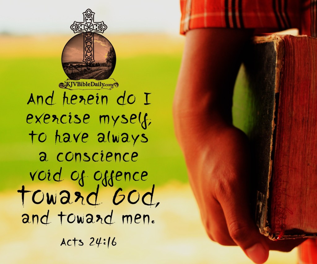 Acts 24:16 KJV Share this:Tweet Share on WhatsApp (Opens in new window) WhatsApp Print (Opens in new window) Print Share on Reddit (Opens in new window) Reddit Email a link to a friend (Opens in new window) Email Share on Tumblr Share on Telegram (Opens in new window) Telegram Like Loading... Related