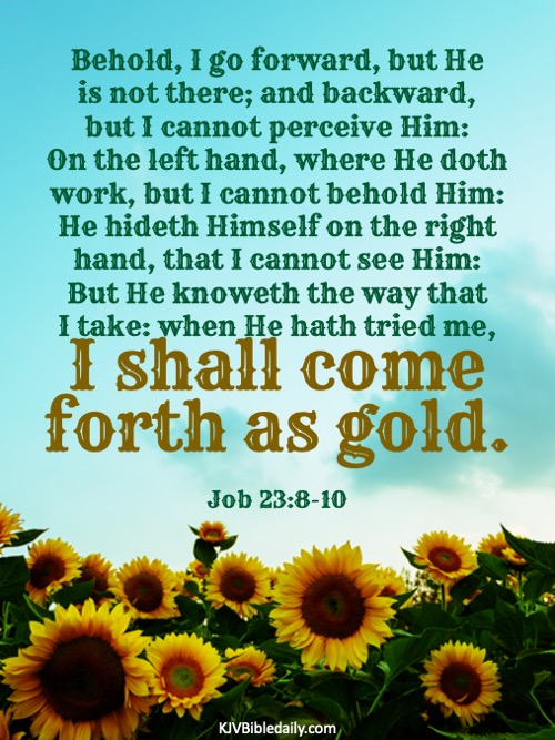Job 23:8-10 KJV Share this:Tweet Share on WhatsApp (Opens in new window) WhatsApp Print (Opens in new window) Print Share on Reddit (Opens in new window) Reddit Email a link to a friend (Opens in new window) Email Share on Tumblr Share on Telegram (Opens in new window) Telegram Like Loading... Related