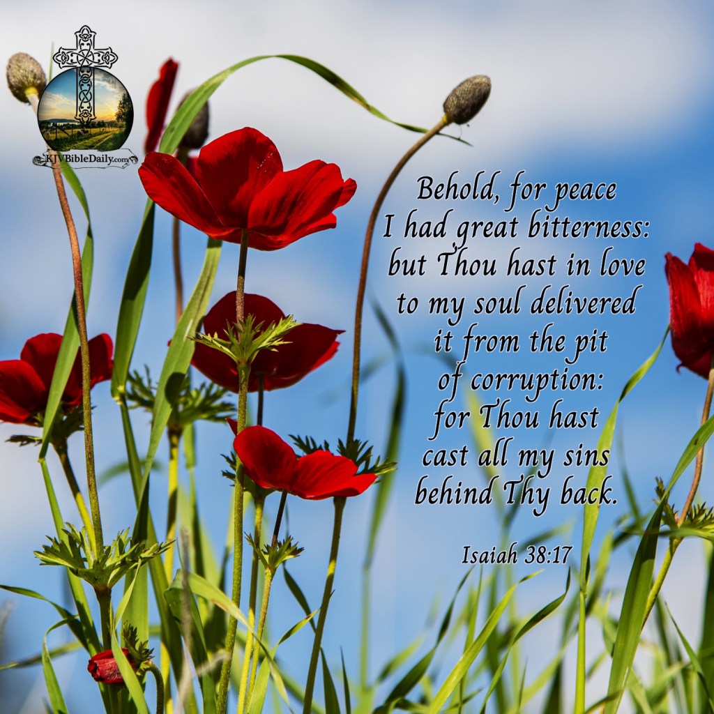 Isaiah 38:17 KJV Share this:Tweet Share on WhatsApp (Opens in new window) WhatsApp Print (Opens in new window) Print Share on Reddit (Opens in new window) Reddit Email a link to a friend (Opens in new window) Email Share on TumblrPocket Share on Telegram (Opens in new window) Telegram Like Loading... Related