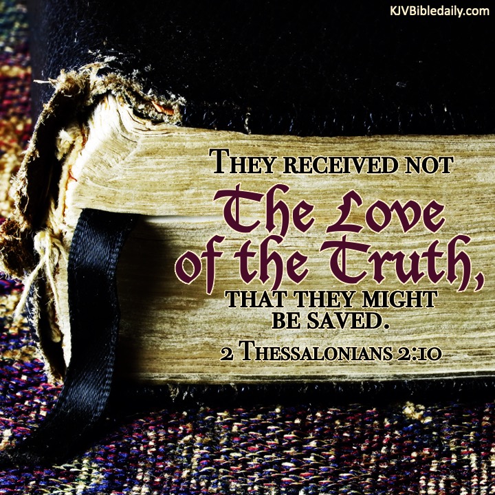 2 Thessalonians 2:10 KJV Share this:Tweet Share on WhatsApp (Opens in new window) WhatsApp Print (Opens in new window) Print Share on Reddit (Opens in new window) Reddit Email a link to a friend (Opens in new window) Email Share on TumblrPocket Share on Telegram (Opens in new window) Telegram Like Loading... Related