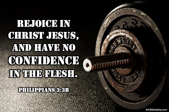 Philippians 3:3b KJV Share this:Tweet Share on WhatsApp (Opens in new window) WhatsApp Print (Opens in new window) Print Share on Reddit (Opens in new window) Reddit Email a link to a friend (Opens in new window) Email Share on Tumblr Share on Telegram (Opens in new window) Telegram Like Loading... Related