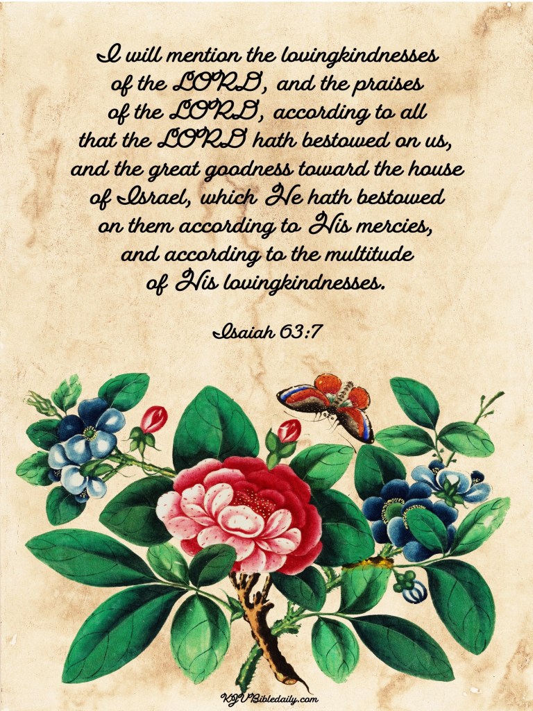 Isaiah 63:7 KJV Share this:Tweet Share on WhatsApp (Opens in new window) WhatsApp Print (Opens in new window) Print Share on Reddit (Opens in new window) Reddit Email a link to a friend (Opens in new window) Email Share on Tumblr Share on Telegram (Opens in new window) Telegram Like Loading... Related