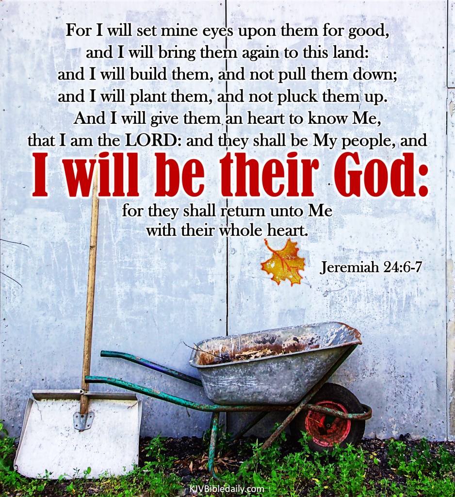 Jeremiah 24:6-7 KJV Share this:Tweet Share on WhatsApp (Opens in new window) WhatsApp Print (Opens in new window) Print Share on Reddit (Opens in new window) Reddit Email a link to a friend (Opens in new window) Email Share on Tumblr Share on Telegram (Opens in new window) Telegram Like Loading... Related