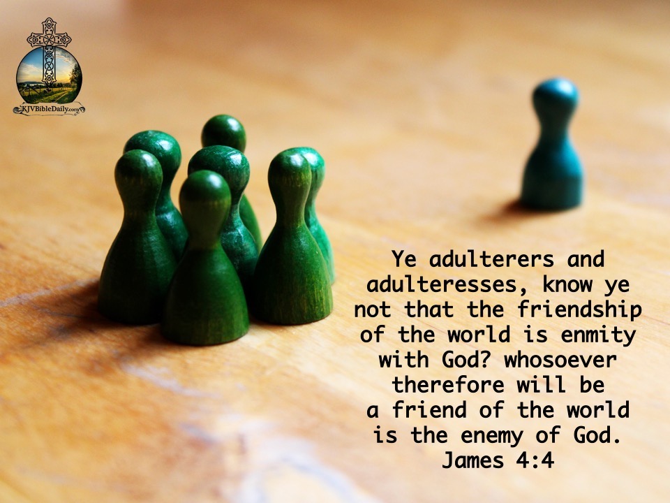 James 4:4 KJV Share this:Tweet Share on WhatsApp (Opens in new window) WhatsApp Print (Opens in new window) Print Share on Reddit (Opens in new window) Reddit Email a link to a friend (Opens in new window) Email Share on Tumblr Share on Telegram (Opens in new window) Telegram Like Loading... Related
