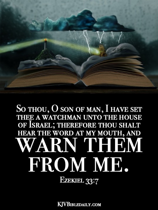 Ezekiel 33:7 KJV Share this:Tweet Share on WhatsApp (Opens in new window) WhatsApp Print (Opens in new window) Print Share on Reddit (Opens in new window) Reddit Email a link to a friend (Opens in new window) Email Share on Tumblr Share on Telegram (Opens in new window) Telegram Like Loading... Related