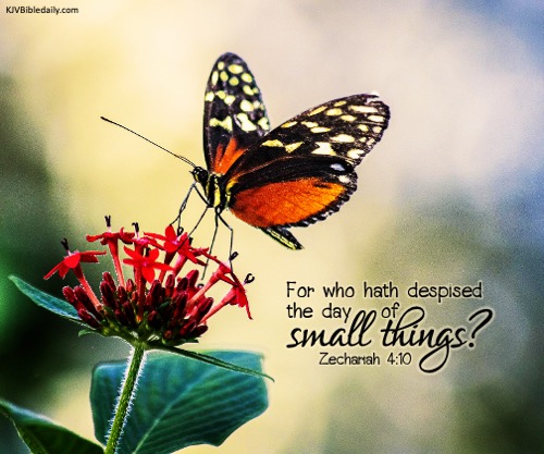 Zechariah 4:10 KJV Share this:Tweet Share on WhatsApp (Opens in new window) WhatsApp Print (Opens in new window) Print Share on Reddit (Opens in new window) Reddit Email a link to a friend (Opens in new window) Email Share on Tumblr Share on Telegram (Opens in new window) Telegram Like Loading... Related