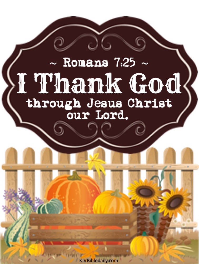 Romans 7:25 KJV Share this:Tweet Share on WhatsApp (Opens in new window) WhatsApp Print (Opens in new window) Print Share on Reddit (Opens in new window) Reddit Email a link to a friend (Opens in new window) Email Share on Tumblr Share on Telegram (Opens in new window) Telegram Like Loading... Related