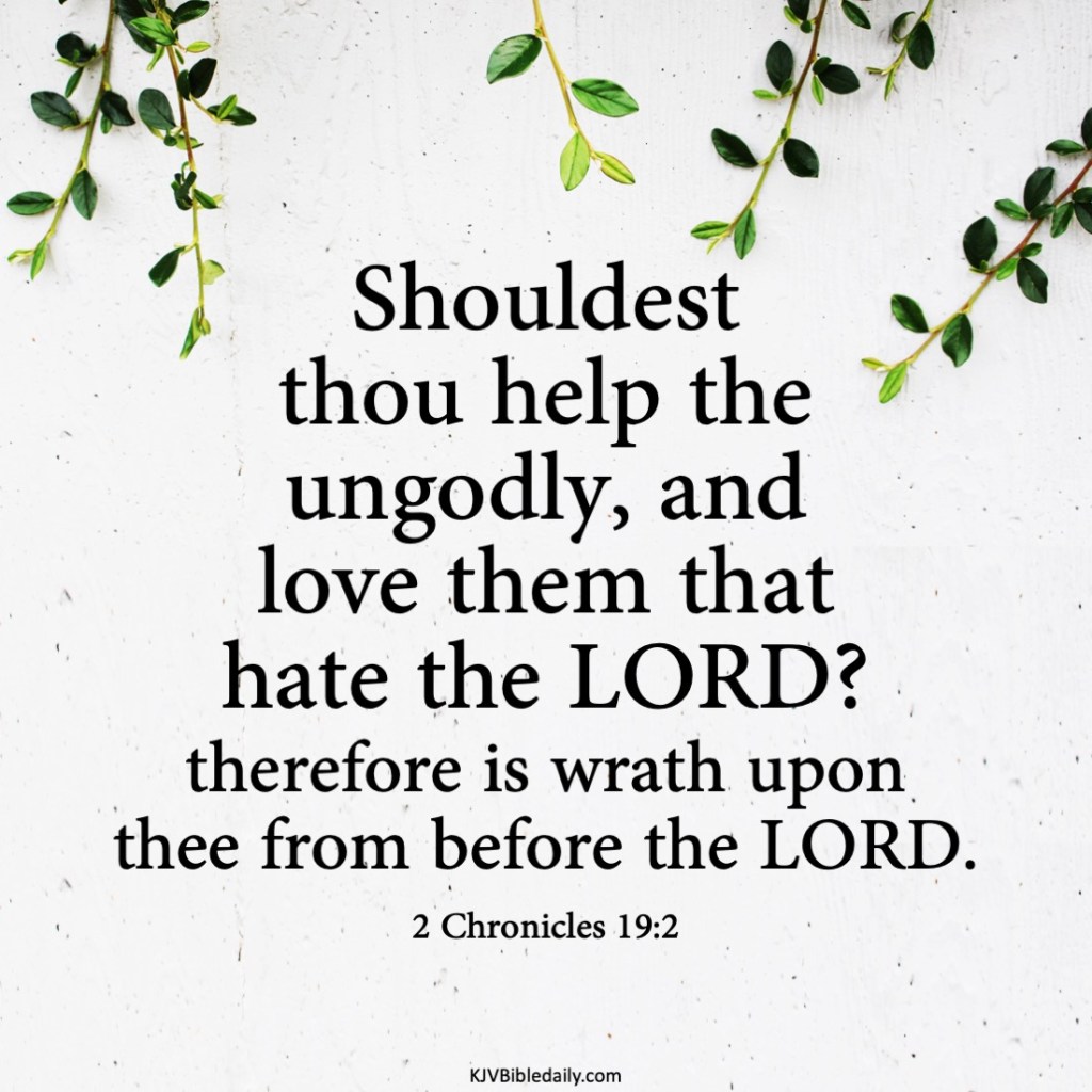 2 Chronicles 19:2 KJV Share this:Tweet Share on WhatsApp (Opens in new window) WhatsApp Print (Opens in new window) Print Share on Reddit (Opens in new window) Reddit Email a link to a friend (Opens in new window) Email Share on Tumblr Share on Telegram (Opens in new window) Telegram Like Loading... Related