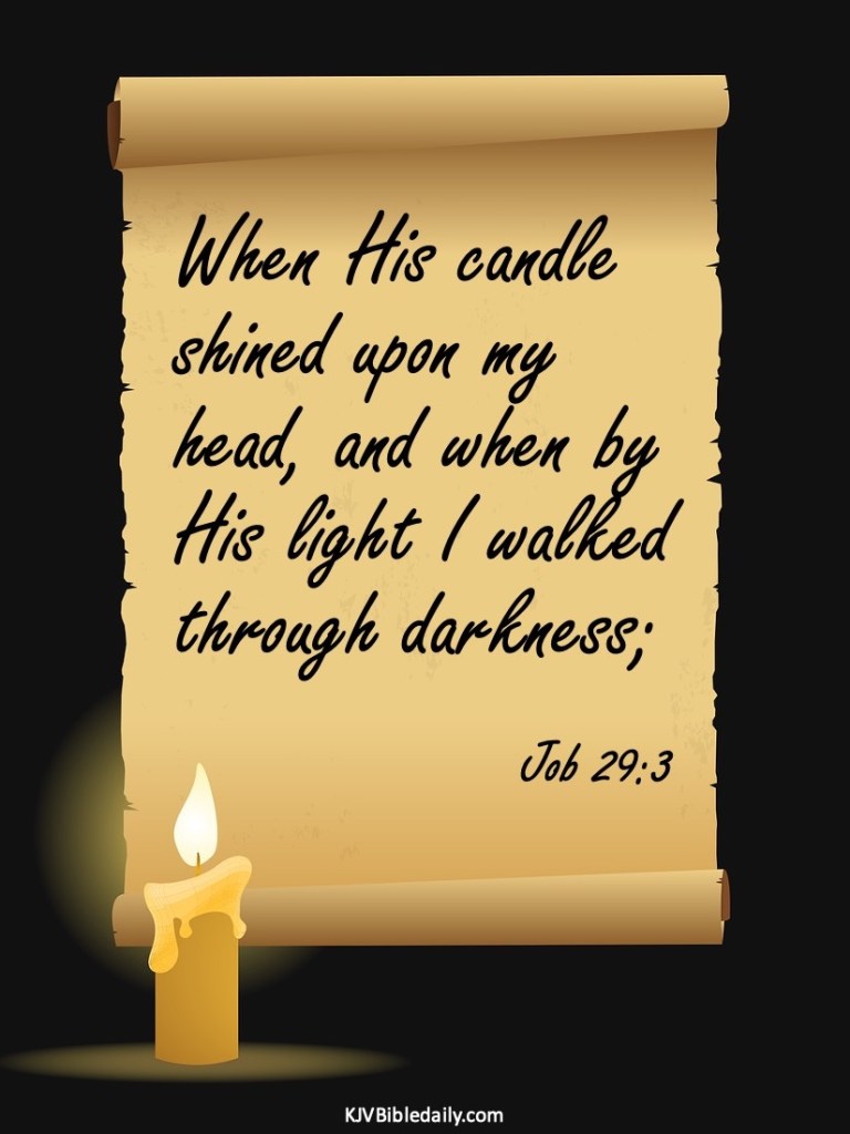Job 29:3 KJV Share this:Tweet Click to share on WhatsApp (Opens in new window) WhatsApp Click to print (Opens in new window) Print Click to share on Reddit (Opens in new window) Reddit Click to email a link to a friend (Opens in new window) Email Share on TumblrPocket Click to share on Telegram (Opens in new window) Telegram Like Loading... Related