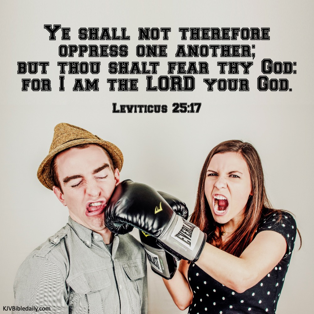 Leviticus 25:17 KJV Share this:Tweet Click to share on WhatsApp (Opens in new window) WhatsApp Click to print (Opens in new window) Print Click to share on Reddit (Opens in new window) Reddit Click to email a link to a friend (Opens in new window) Email Share on TumblrPocket Click to share on Telegram (Opens in new window) Telegram Like Loading... Related