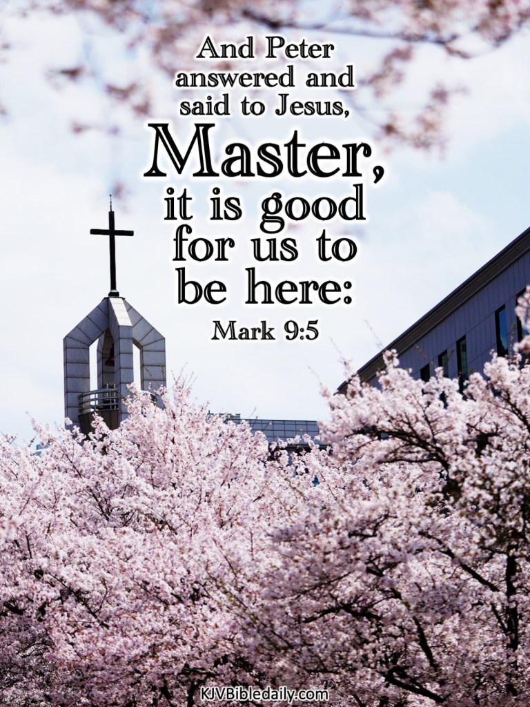 Mark 9:5 KJV Share this:Tweet Share on WhatsApp (Opens in new window) WhatsApp Print (Opens in new window) Print Share on Reddit (Opens in new window) Reddit Email a link to a friend (Opens in new window) Email Share on Tumblr Share on Telegram (Opens in new window) Telegram Like Loading... Related