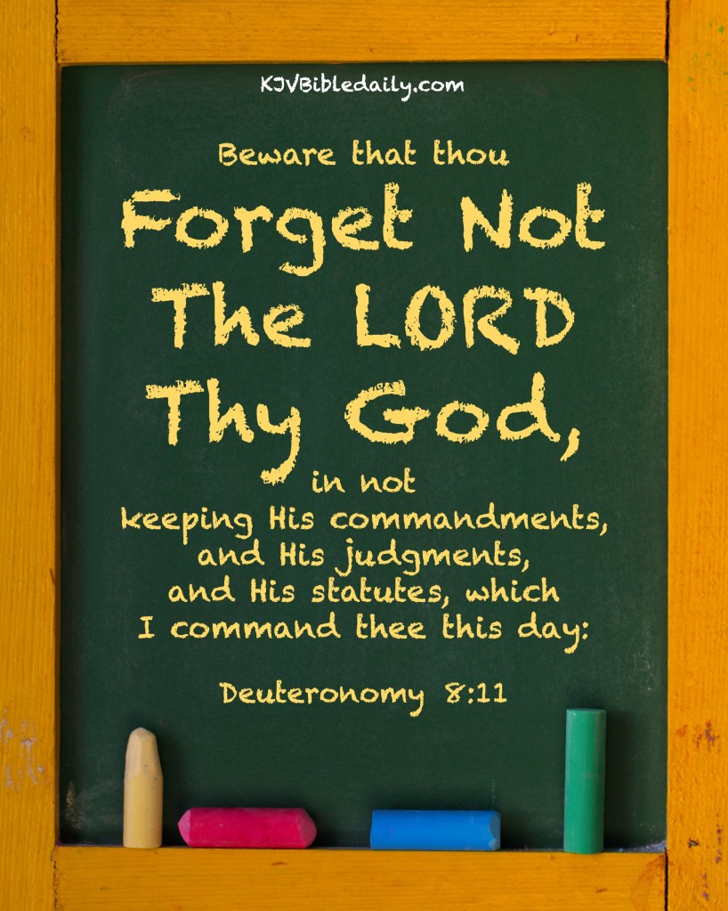 Deuteronomy 8:11 KJV Share this:Tweet Share on WhatsApp (Opens in new window) WhatsApp Print (Opens in new window) Print Share on Reddit (Opens in new window) Reddit Email a link to a friend (Opens in new window) Email Share on Tumblr Share on Telegram (Opens in new window) Telegram Like Loading... Related