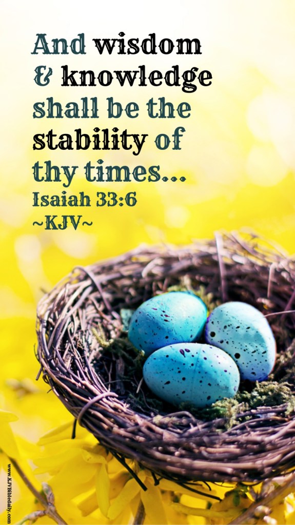March – Isaiah 33:6 KJV Share this:Tweet Share on WhatsApp (Opens in new window) WhatsApp Print (Opens in new window) Print Share on Reddit (Opens in new window) Reddit Email a link to a friend (Opens in new window) Email Share on Tumblr Share on Telegram (Opens in new window) Telegram Like Loading... Related