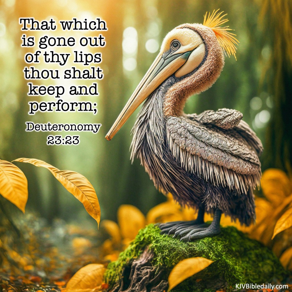 Deuteronomy 23:23 KJV Share this:Tweet Share on WhatsApp (Opens in new window) WhatsApp Print (Opens in new window) Print Share on Reddit (Opens in new window) Reddit Email a link to a friend (Opens in new window) Email Share on Tumblr Share on Telegram (Opens in new window) Telegram Like Loading... Related
