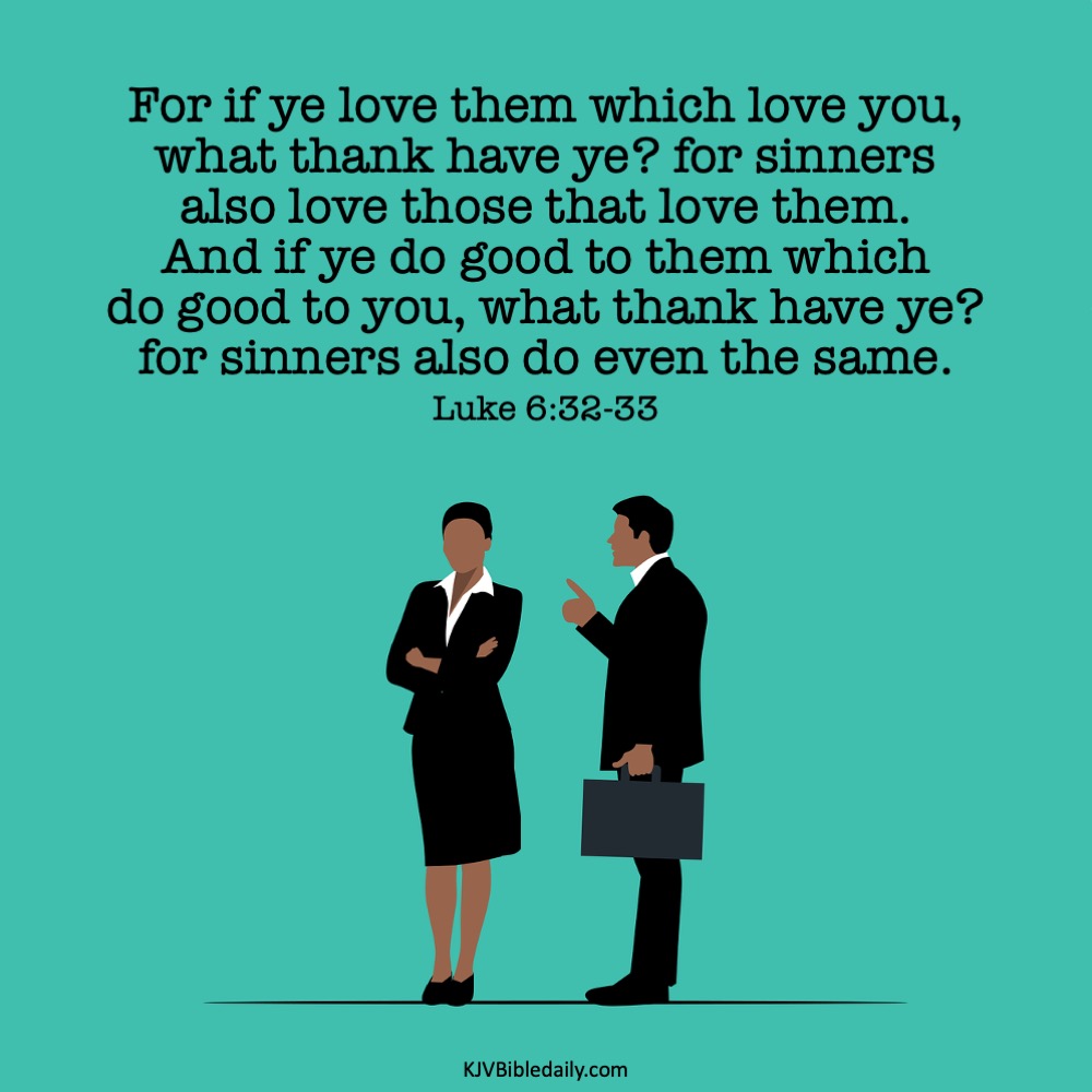 Luke 6:32-33 KJV Share this:Tweet Share on WhatsApp (Opens in new window) WhatsApp Print (Opens in new window) Print Share on Reddit (Opens in new window) Reddit Email a link to a friend (Opens in new window) Email Share on Tumblr Share on Telegram (Opens in new window) Telegram Like Loading... Related