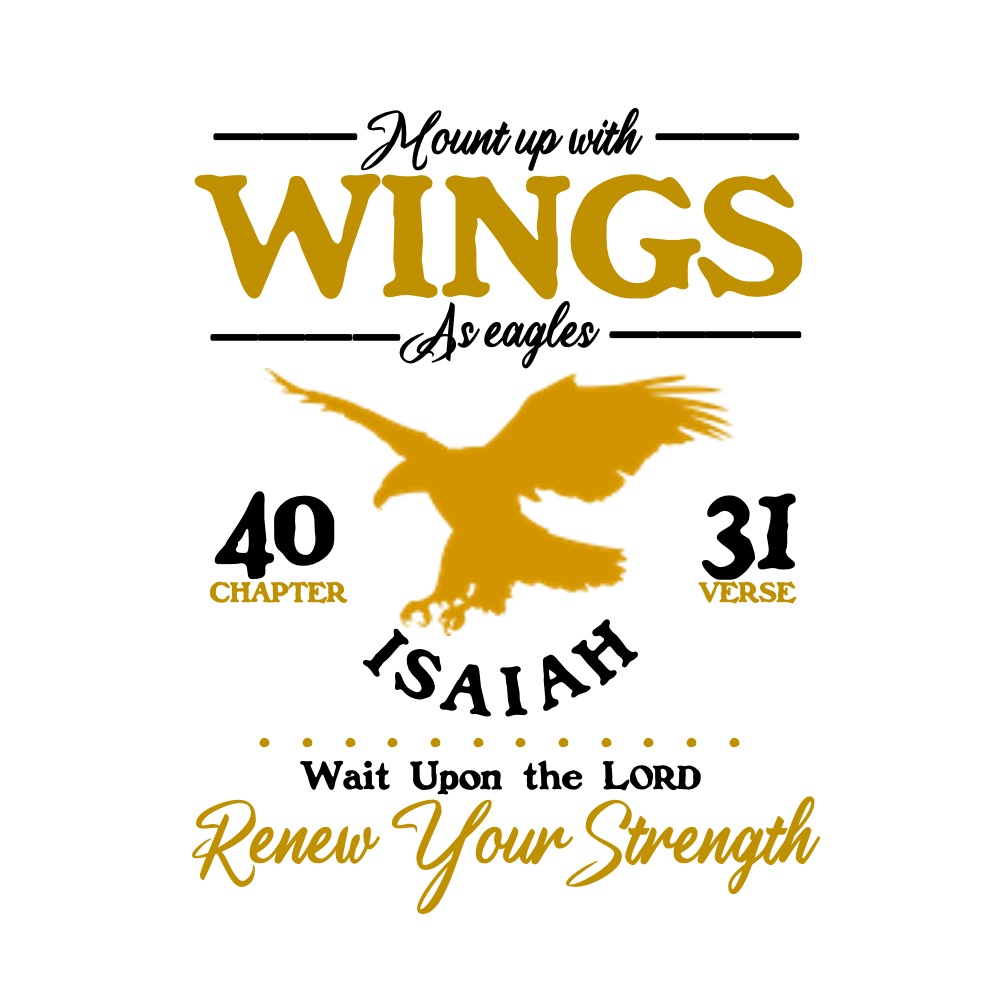 Isaiah 40:31 KJV Shop for products with this design here… Share this:Tweet Share on WhatsApp (Opens in new window) WhatsApp Print (Opens in new window) Print Share on Reddit (Opens in new window) Reddit Email a link to a friend (Opens in new window) Email Share on TumblrPocket Share on Telegram (Opens in new window) Telegram Like Loading... Related
