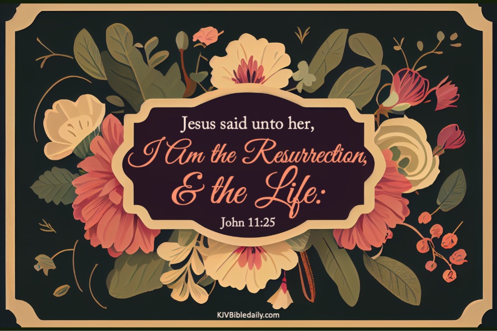 John 11:25 KJV Share this:Tweet Share on WhatsApp (Opens in new window) WhatsApp Print (Opens in new window) Print Share on Reddit (Opens in new window) Reddit Email a link to a friend (Opens in new window) Email Share on TumblrPocket Share on Telegram (Opens in new window) Telegram Like Loading... Related