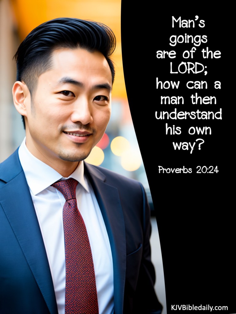 Proverbs 20:24 KJV Share this:Tweet Click to share on WhatsApp (Opens in new window) WhatsApp Click to print (Opens in new window) Print Click to share on Reddit (Opens in new window) Reddit Click to email a link to a friend (Opens in new window) Email Share on TumblrPocket Click to share on Telegram (Opens in new window) Telegram Like Loading... Related
