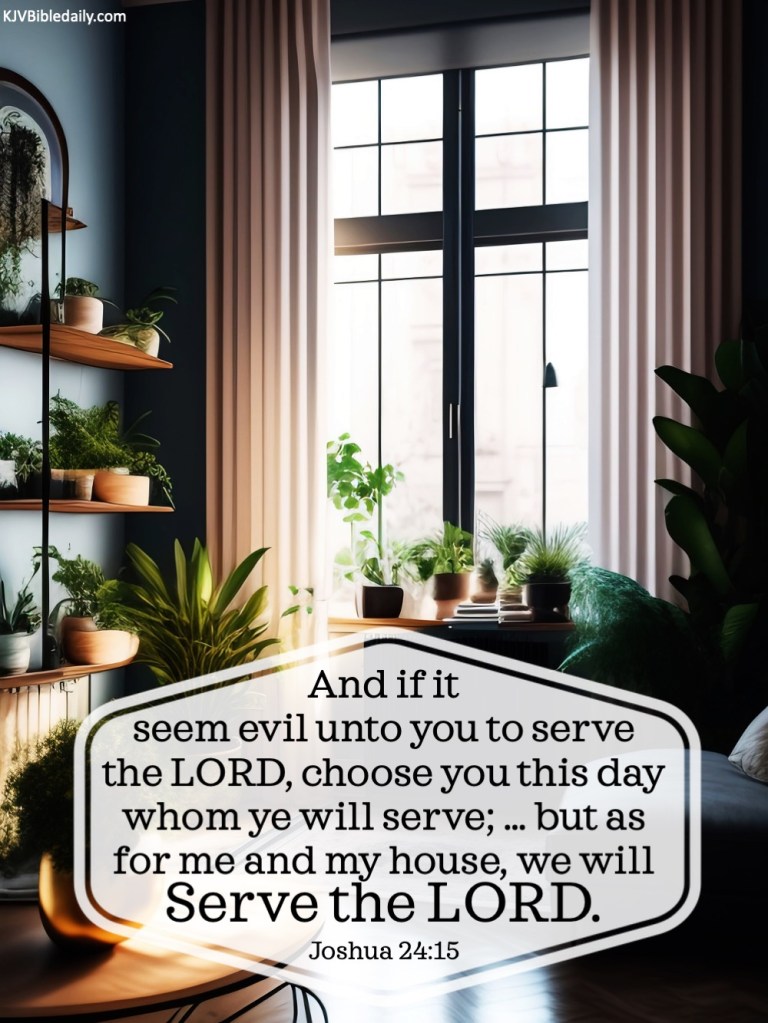 Joshua 24:15 KJV Share this:Tweet Click to share on WhatsApp (Opens in new window) WhatsApp Click to print (Opens in new window) Print Click to share on Reddit (Opens in new window) Reddit Click to email a link to a friend (Opens in new window) Email Share on TumblrPocket Click to share on Telegram (Opens in new window) Telegram Like Loading... Related