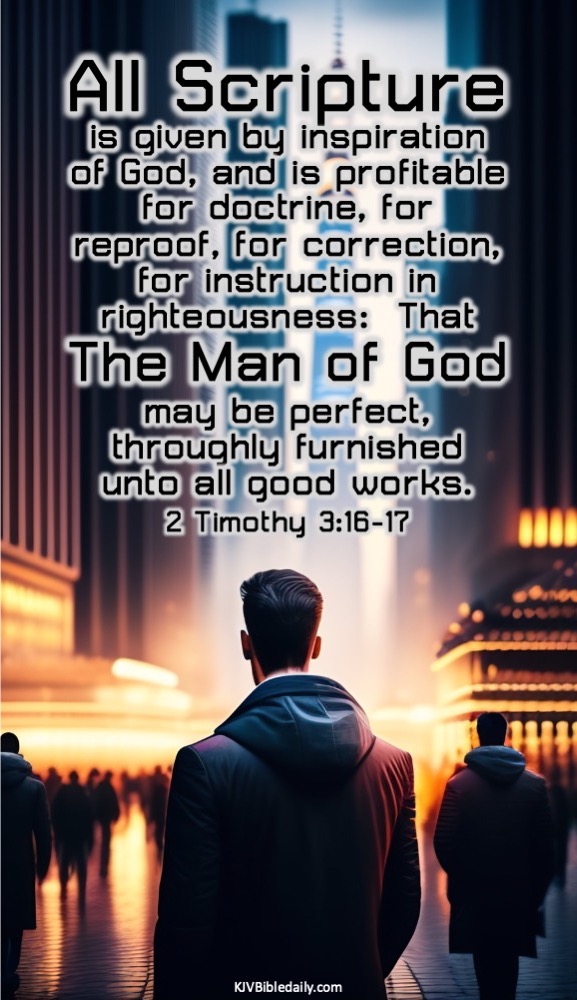 2 Timothy 3:16-17 KJV Share this:Tweet Share on WhatsApp (Opens in new window) WhatsApp Print (Opens in new window) Print Share on Reddit (Opens in new window) Reddit Email a link to a friend (Opens in new window) Email Share on TumblrPocket Share on Telegram (Opens in new window) Telegram Like Loading... Related