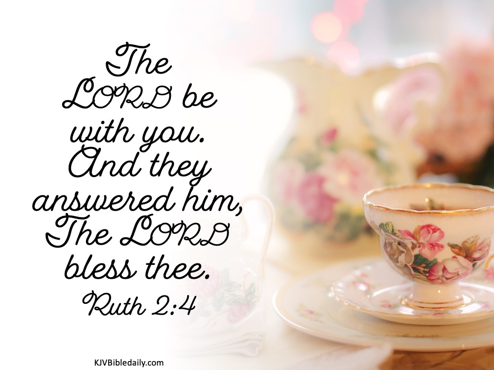 Ruth 2:4 KJV Share this:Tweet Click to share on WhatsApp (Opens in new window) WhatsApp Click to print (Opens in new window) Print Click to share on Reddit (Opens in new window) Reddit Click to email a link to a friend (Opens in new window) Email Share on TumblrPocket Click to share on Telegram (Opens in new window) Telegram Like Loading... Related