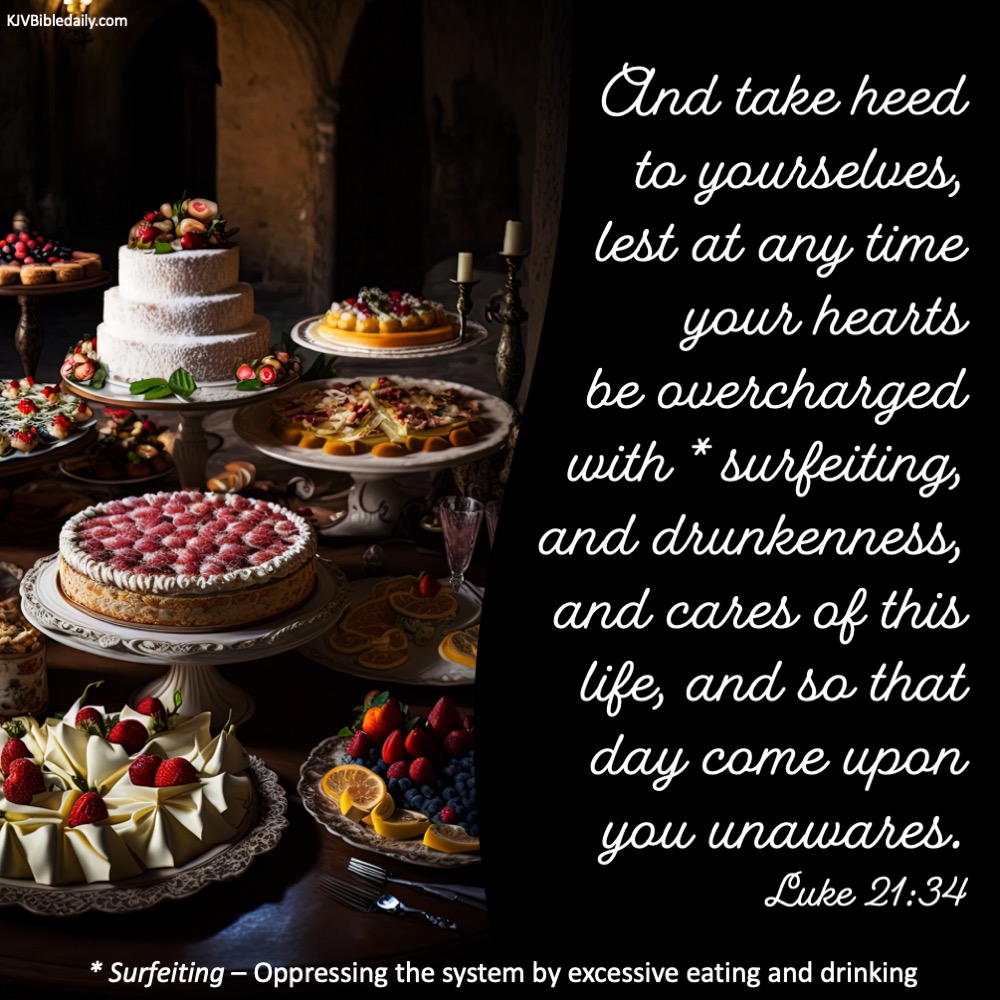 Luke 21:34 KJV Share this:Tweet Click to share on WhatsApp (Opens in new window) WhatsApp Click to print (Opens in new window) Print Click to share on Reddit (Opens in new window) Reddit Click to email a link to a friend (Opens in new window) Email Share on TumblrPocket Click to share on Telegram (Opens in new window) Telegram Like Loading... Related