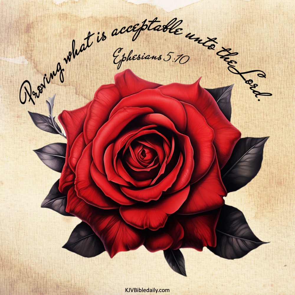 Ephesians 5:10 KJV Share this:Tweet Click to share on WhatsApp (Opens in new window) WhatsApp Click to print (Opens in new window) Print Click to share on Reddit (Opens in new window) Reddit Click to email a link to a friend (Opens in new window) Email Share on TumblrPocket Click to share on Telegram (Opens in new window) Telegram Like Loading... Related