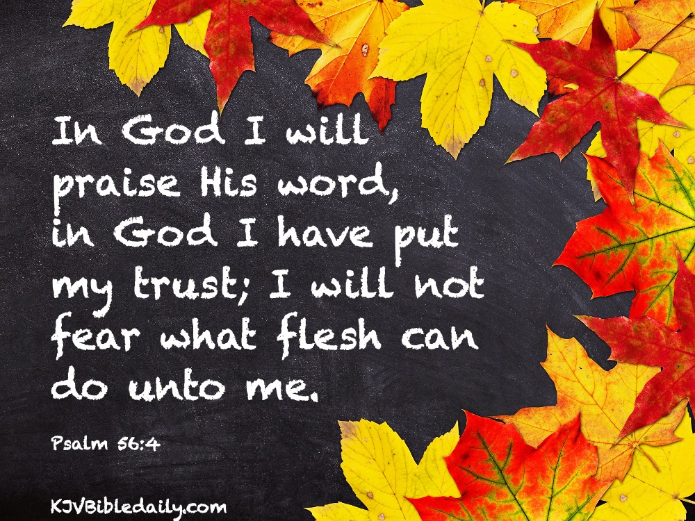 Psalm 56:4 KJV Share this:Tweet Click to share on WhatsApp (Opens in new window) WhatsApp Click to print (Opens in new window) Print Click to share on Reddit (Opens in new window) Reddit Click to email a link to a friend (Opens in new window) Email Share on TumblrPocket Click to share on Telegram (Opens in new window) Telegram Like Loading... Related