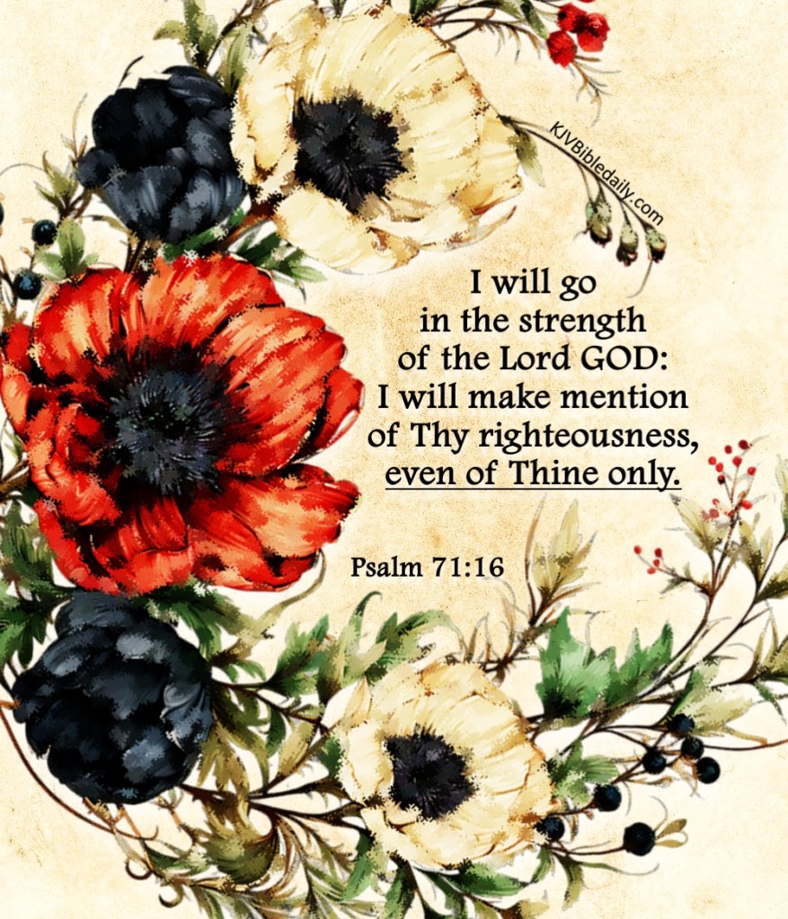 Psalm 71:16 KJV Share this:Tweet Click to share on WhatsApp (Opens in new window) WhatsApp Click to print (Opens in new window) Print Click to share on Reddit (Opens in new window) Reddit Click to email a link to a friend (Opens in new window) Email Share on TumblrPocket Click to share on Telegram (Opens in new window) Telegram Like Loading... Related