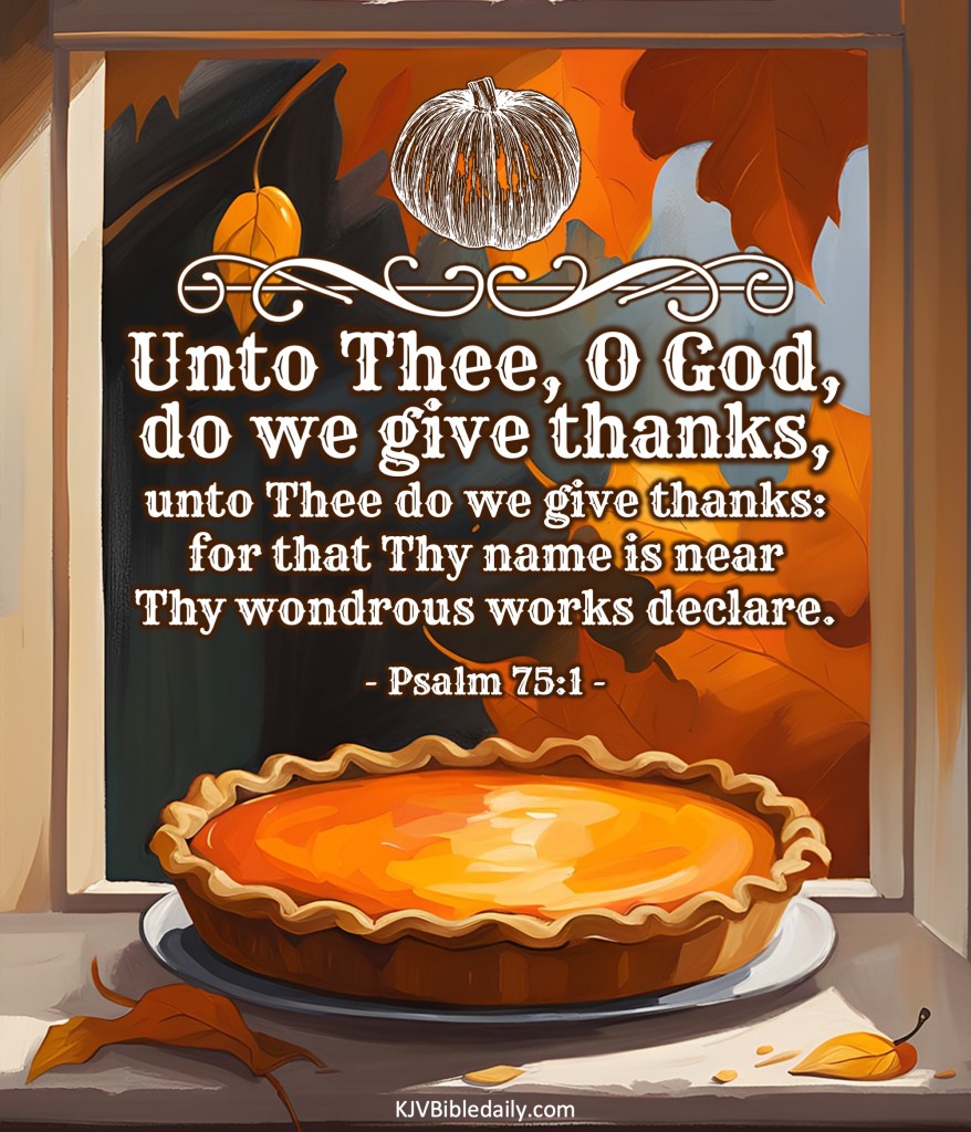 Psalm 75:1 KJV Share this:Tweet Click to share on WhatsApp (Opens in new window) WhatsApp Click to print (Opens in new window) Print Click to share on Reddit (Opens in new window) Reddit Click to email a link to a friend (Opens in new window) Email Share on TumblrPocket Click to share on Telegram (Opens in new window) Telegram Like Loading... Related