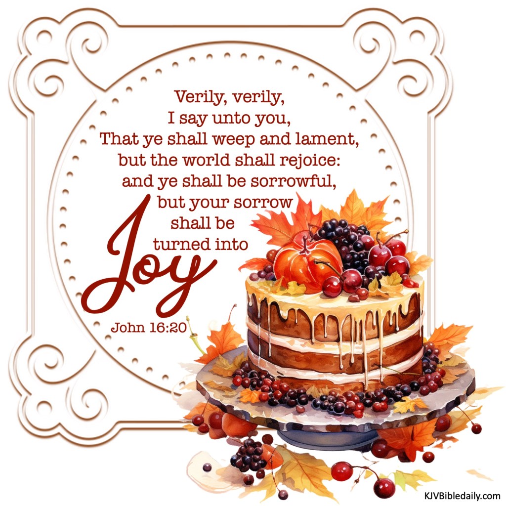 John 16:20 KJV Share this:Tweet Click to share on WhatsApp (Opens in new window) WhatsApp Click to print (Opens in new window) Print Click to share on Reddit (Opens in new window) Reddit Click to email a link to a friend (Opens in new window) Email Share on TumblrPocket Click to share on Telegram (Opens in new window) Telegram Like Loading... Related
