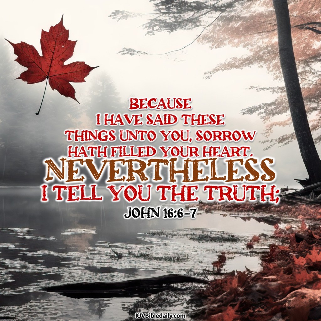John 16:6-7a KJV Share this:Tweet Click to share on WhatsApp (Opens in new window) WhatsApp Click to print (Opens in new window) Print Click to share on Reddit (Opens in new window) Reddit Click to email a link to a friend (Opens in new window) Email Share on TumblrPocket Click to share on Telegram (Opens in new window) Telegram Like Loading... Related