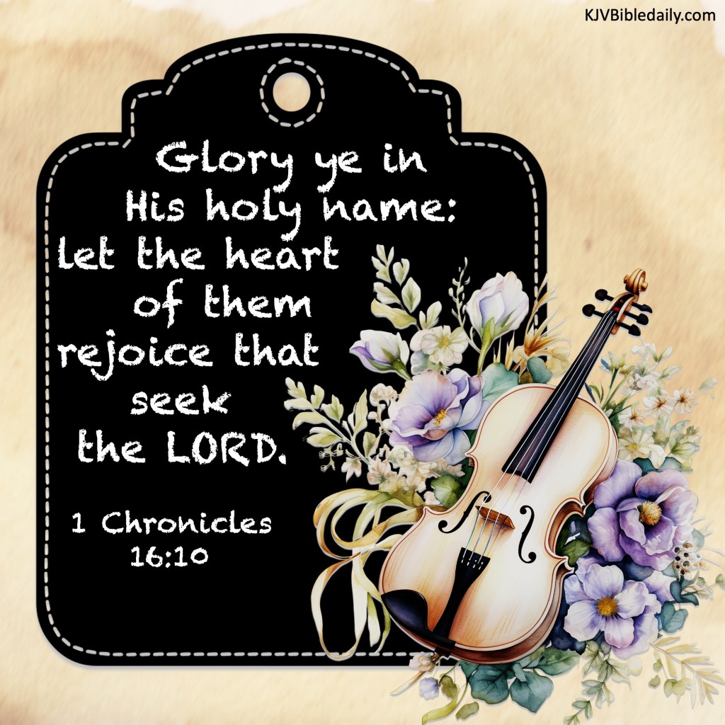 1 Chronicles 16:10 KJV Share this:Tweet Click to share on WhatsApp (Opens in new window) WhatsApp Click to print (Opens in new window) Print Click to share on Reddit (Opens in new window) Reddit Click to email a link to a friend (Opens in new window) Email Share on TumblrPocket Click to share on Telegram (Opens in new window) Telegram Like Loading... Related