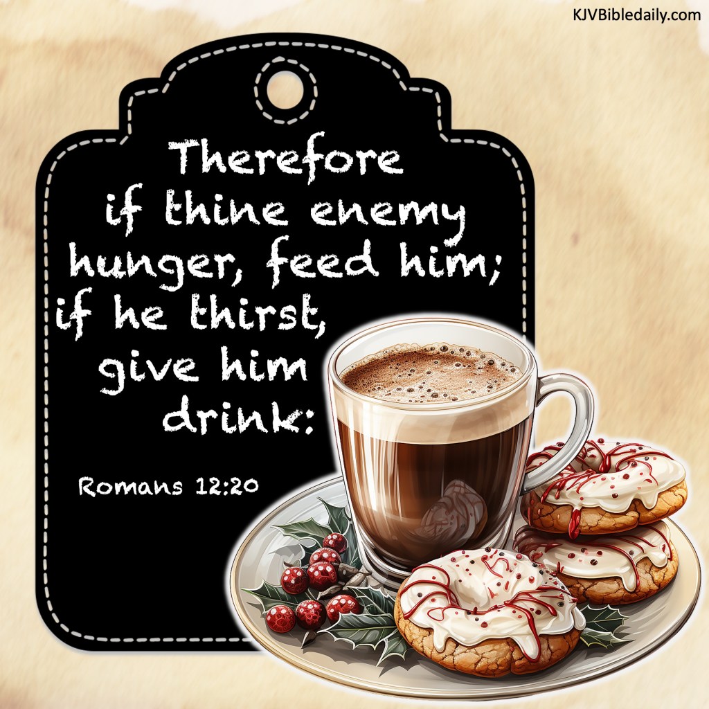 Romans 12:20 KJV Share this:Tweet Click to share on WhatsApp (Opens in new window) WhatsApp Click to print (Opens in new window) Print Click to share on Reddit (Opens in new window) Reddit Click to email a link to a friend (Opens in new window) Email Share on TumblrPocket Click to share on Telegram (Opens in new window) Telegram Like Loading... Related