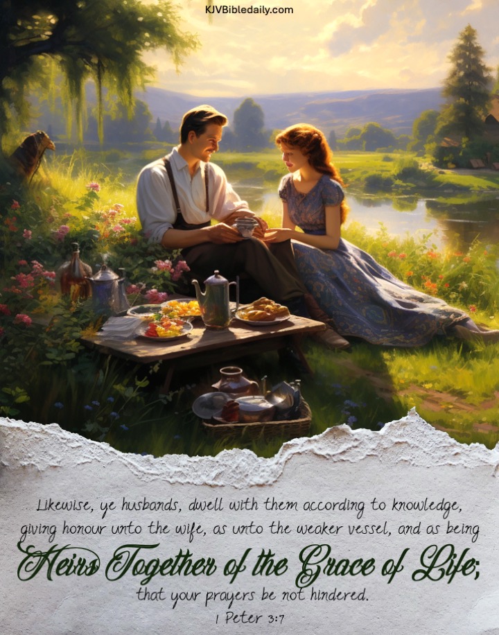 1 Peter 3:7 KJV Share this:Tweet Click to share on WhatsApp (Opens in new window) WhatsApp Click to print (Opens in new window) Print Click to share on Reddit (Opens in new window) Reddit Click to email a link to a friend (Opens in new window) Email Share on TumblrPocket Click to share on Telegram (Opens in new window) Telegram Like Loading... Related