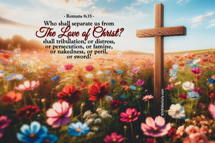 Romans 8:35 KJV Share this:Tweet Click to share on WhatsApp (Opens in new window) WhatsApp Click to print (Opens in new window) Print Click to share on Reddit (Opens in new window) Reddit Click to email a link to a friend (Opens in new window) Email Share on TumblrPocket Click to share on Telegram (Opens in new window) Telegram Like Loading... Related